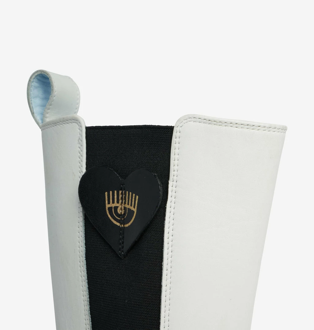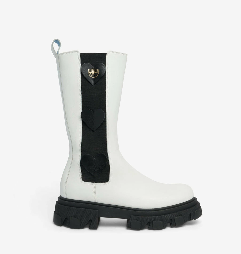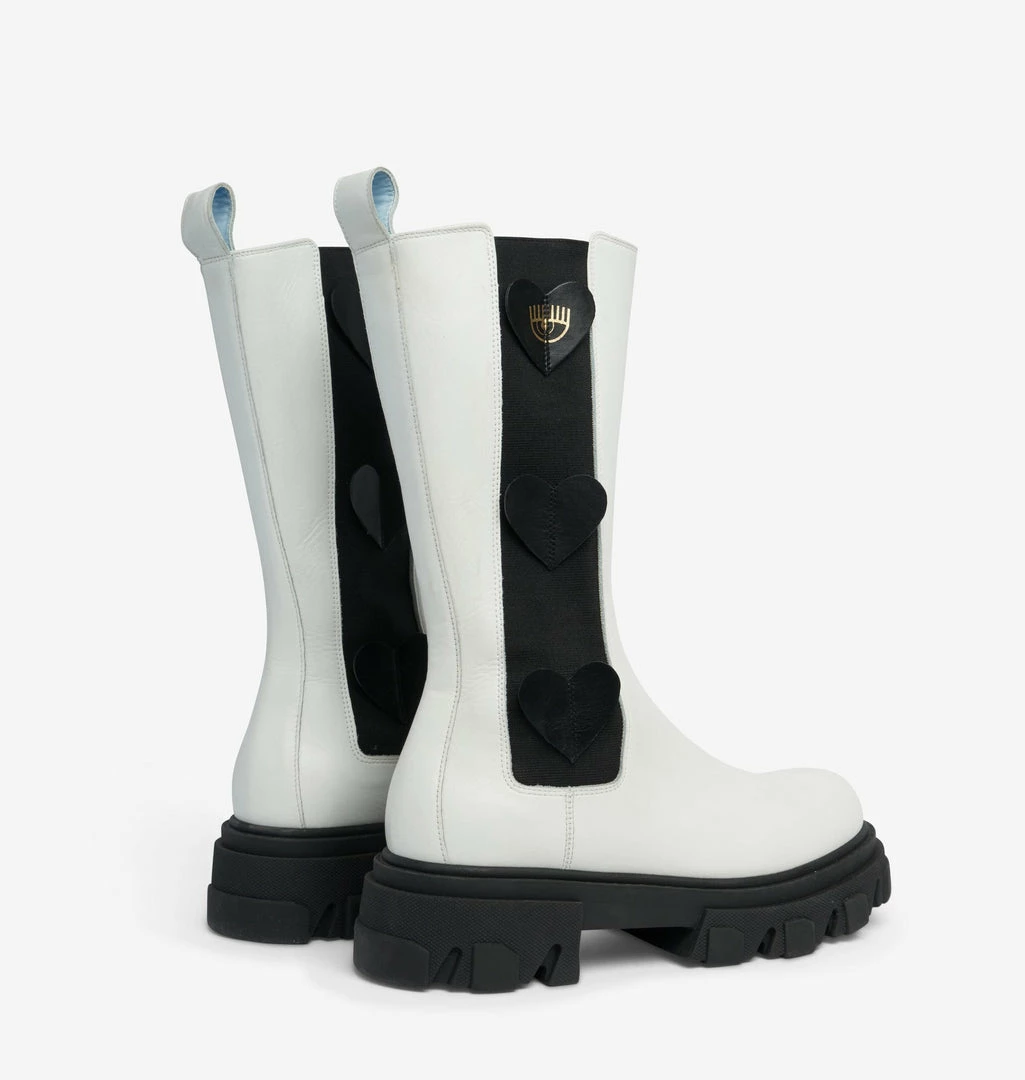 Combat boots in white leather. Leather hearts on the sides. Round tip. Rubber sole. Made in Italy.