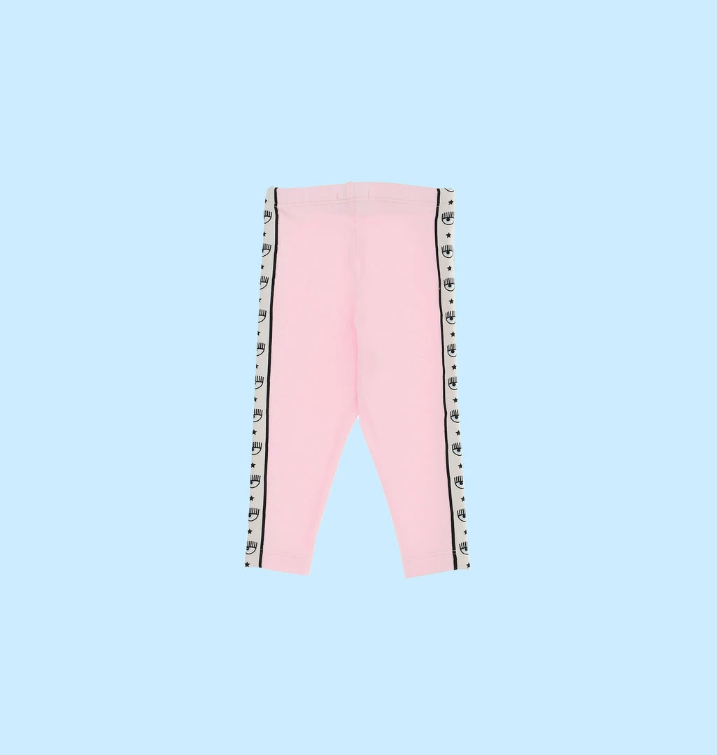 Pink stretch cotton leggings with elastic waistband and Logomania band on the sides.