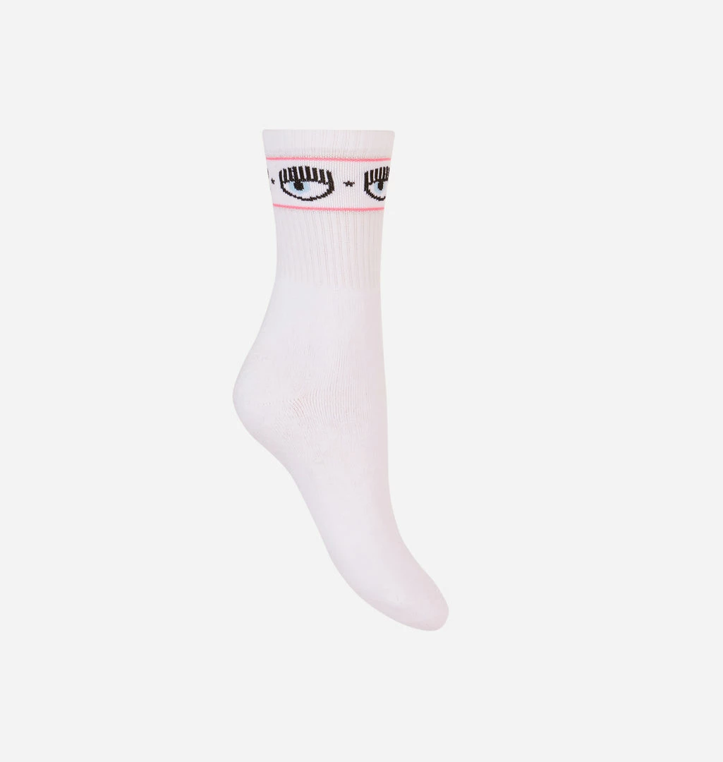 Chiara Ferragni Brand white cotton socks with Logomania band.