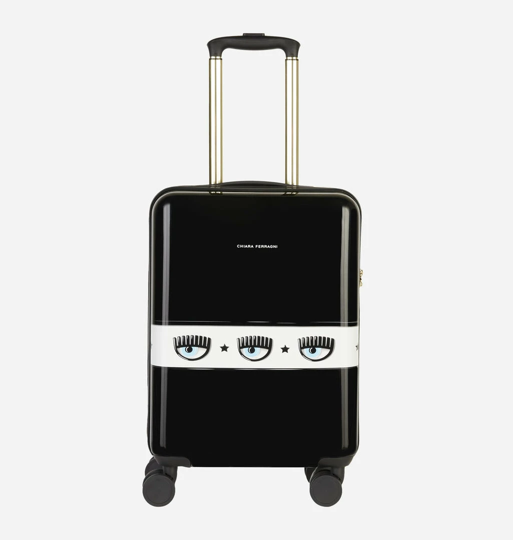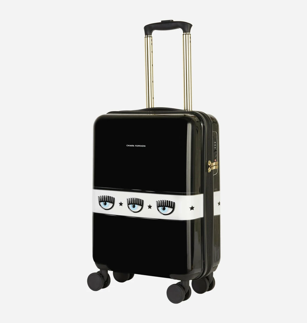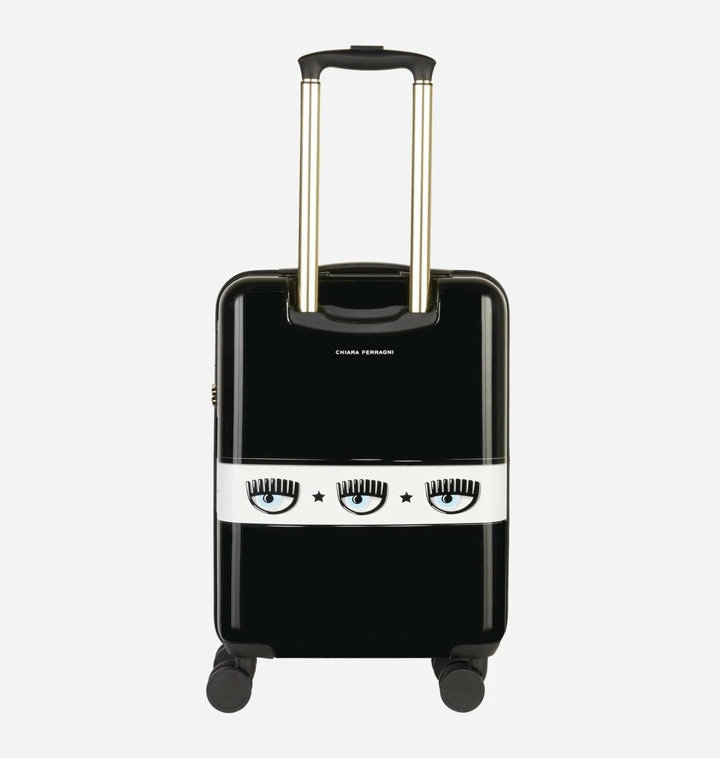 Chiara Ferragni Brand black suitcase with Maxi Logomania band. L: 34 x P:20 x H:52,5 cm
