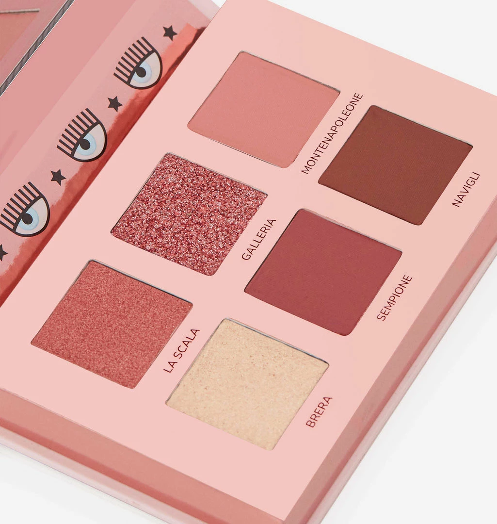 Milano is the eye palette made up of 6 shades of super versatile pink nude eyeshadows. This palette features highly pigmented formulas and contains matte, shimmer, metallic and glitter colors, perfect for expressing yourself at best in every situation. Each shade bears the name of the places of the city of Milan that Chiara considers her “favorite places”.